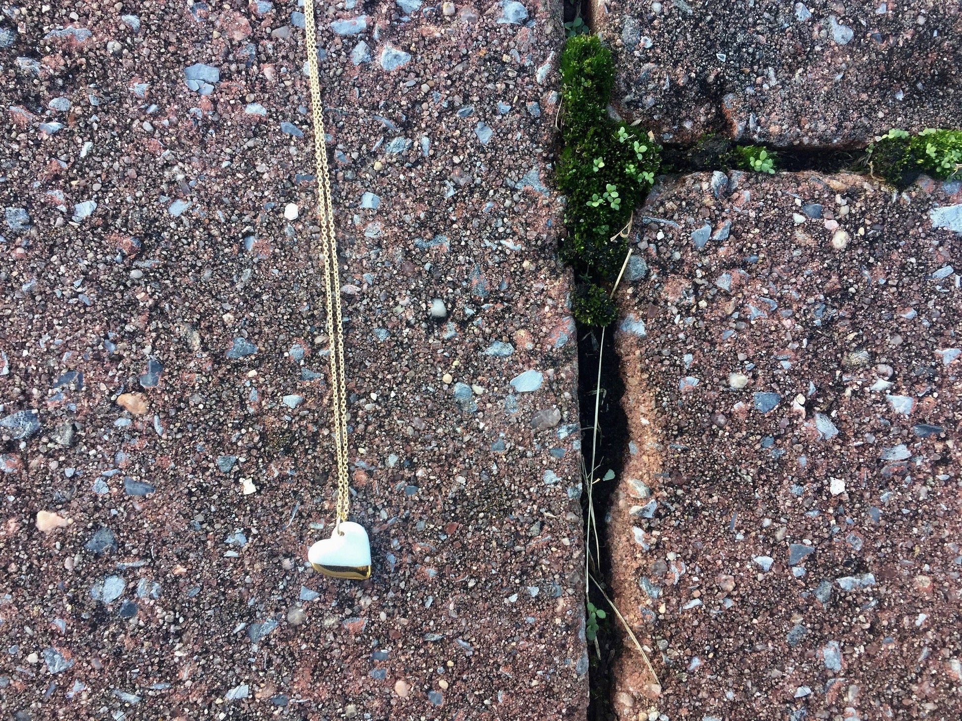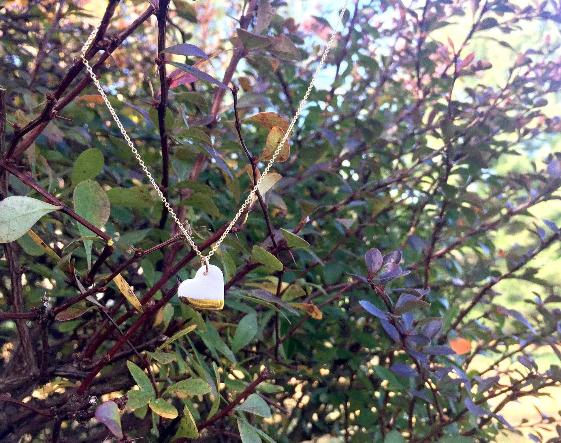 Porcelain + 22K gold heart necklace from Myanmar
